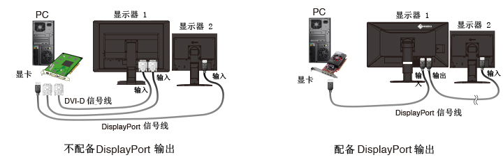 使用DisplayPort菊花链连接的RadiForce显示器的兼容性