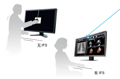 离开时节省能耗人体感应传感器会在用户离开时提示显示器切换到节能模式,并会在用户返回时立即恢复运行,以便在显示器不使用时节约能耗。在最新的 RadiForce 型号中,传感器运用热传感方法检测用户是否存在。与传统的检测方法相比,该方法扩大了检测范围和角度,在使用多台显示器时很有效果。 |
