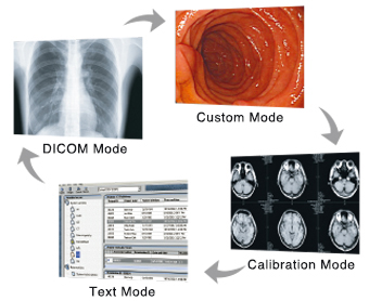 通过CAL Switch 功能,用户可为不同设备,如CR, CT和内窥镜系统等选择相应的影像观看模式。使用绑定的 RadiCS LE 软件将模式设置为自动切换到最佳查看状态。 |