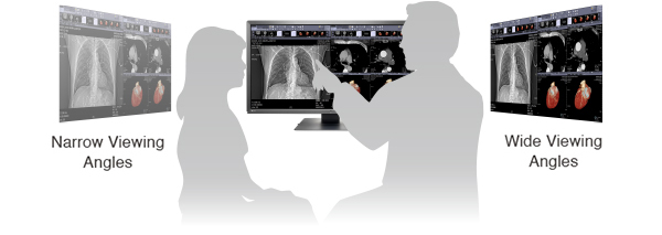 宽视角使您在从侧面观看时屏幕的色彩偏移达到最低限度,同时还允许多人同时舒适地观看显示器。